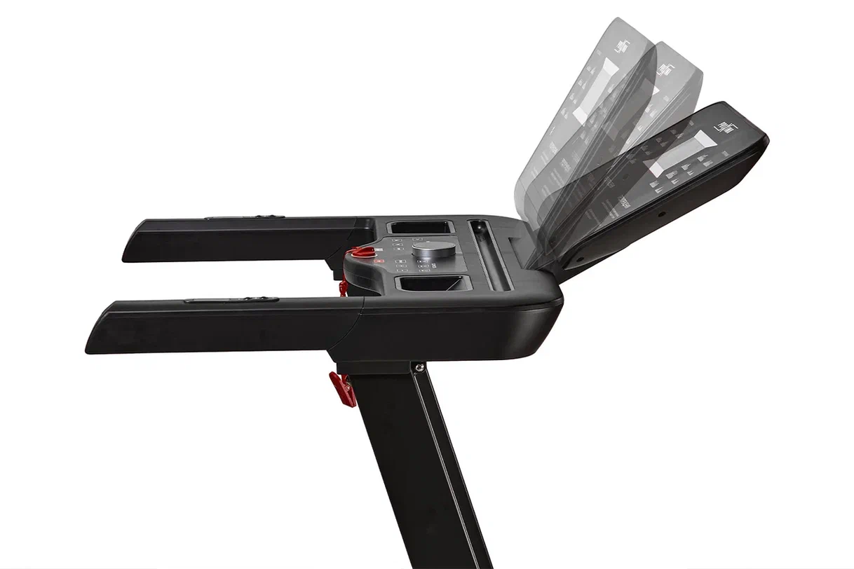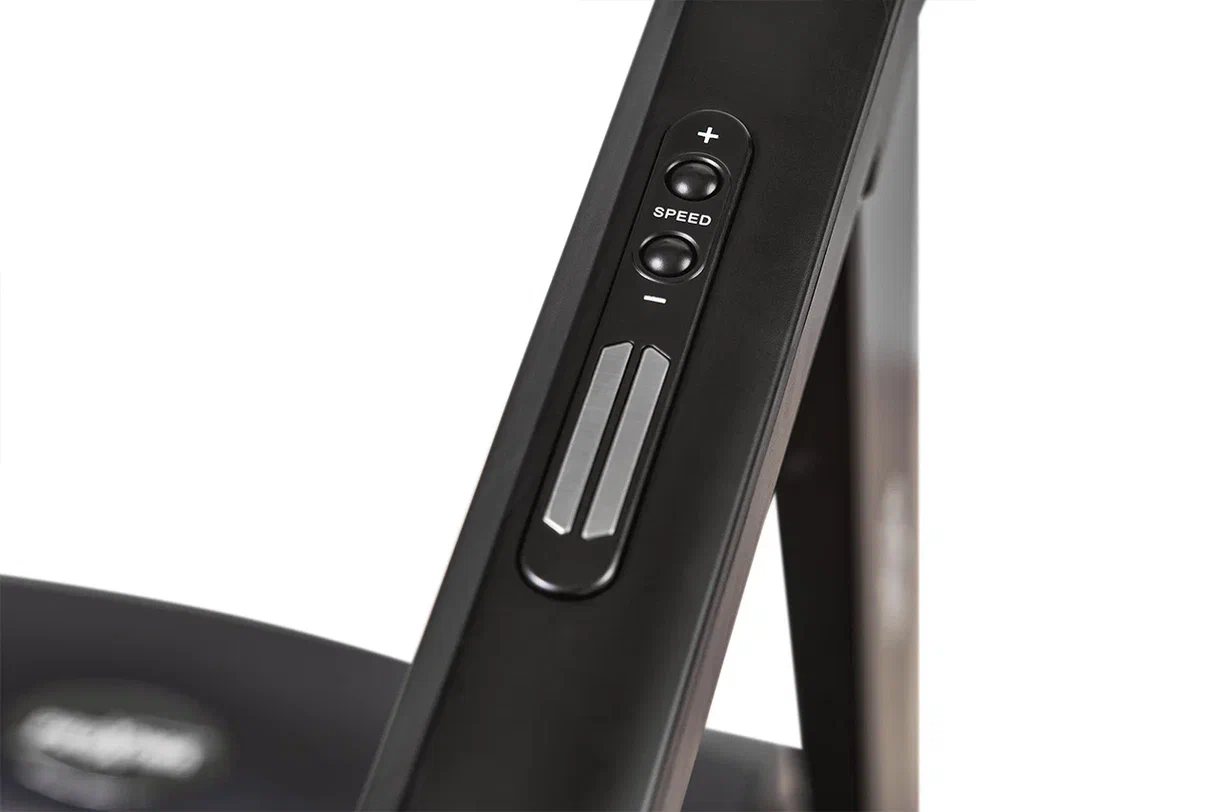 Измерение сердечного ритма осуществляется через сенсорные датчики на поручнях, а кнопки регулировки скорости и наклона расположены прямо на рукоятках, чтобы вы могли менять нагрузку без остановки.