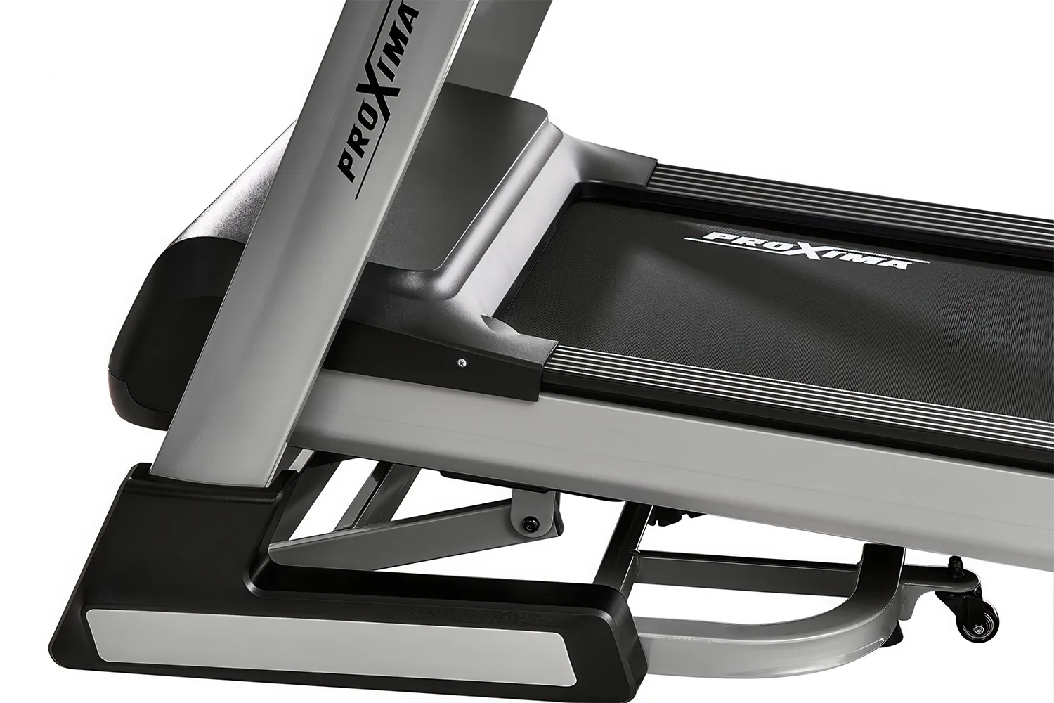 Благодаря прочной стальной раме и усиленным соединениям спортивная беговая дорожка выдерживает нагрузку до 150 кг. Гидравлическая система JUST CLICK делает процесс складывания безопасным и лёгким, а транспортировочные ролики позволяют перемещать тренажёр без усилий.