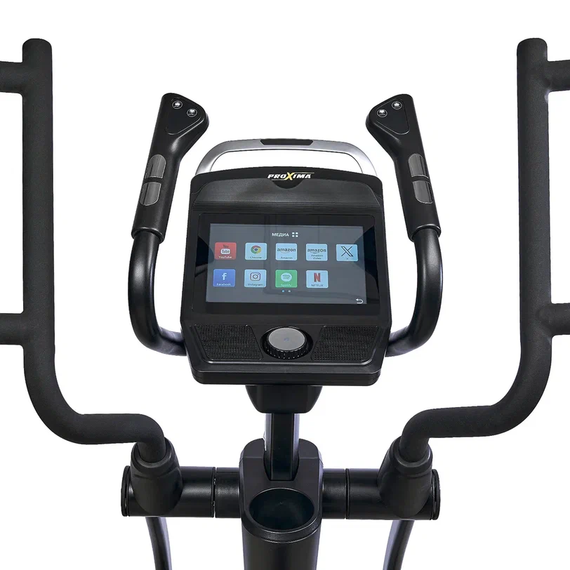 Эллиптический тренажер PROXIMA Counsul (арт. PREL-520) — это решение для тех, кто хочет получать дома тот же уровень тренировки, что и в профессиональном зале. Одна из главных фишек тренажёра - цветной 10-дюймовый touch screen дисплей. Он отображает все параметры тренировки и предлагает 30 встроенных программ — от базовых режимов до продвинутых сценариев. Есть поддержка Bluetooth для воспроизведения музыки, а через Wi-Fi можно быстро выйти в Youtube, Chrome, Netflix и другие сервисы.