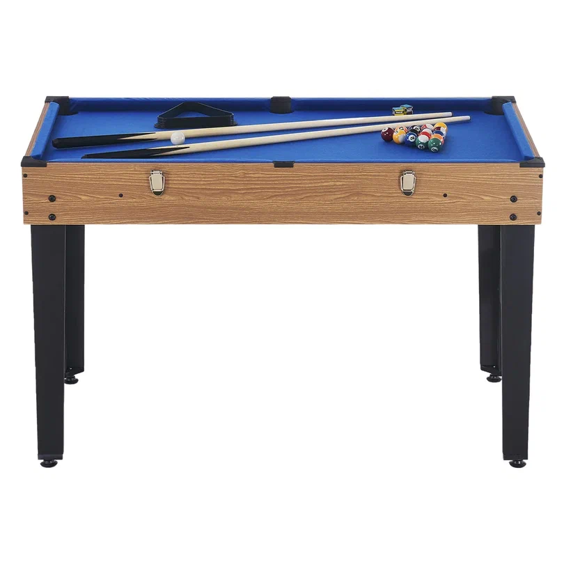 | Комплектация | Игровой стол, по 13 игроков 2-х видов, 2 мячика;набор бильярдных шаров, треугольник, 2 кия, щетка, 6 шт луз; 2 шт ворота, 2 шт биты |