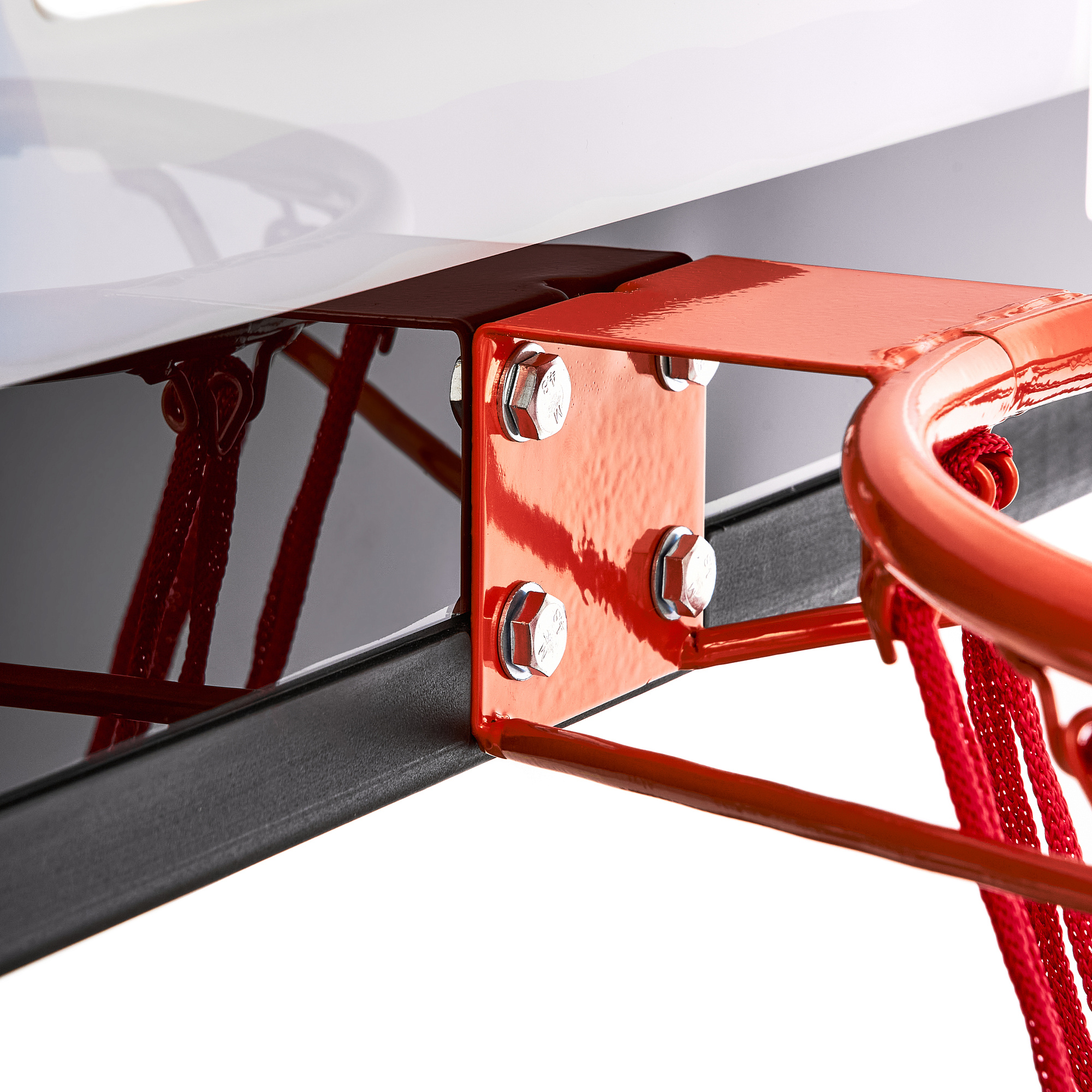 Щит изготовлен из прозрачного ударопрочного ПЭ, оснащен баскетбольным кольцом диаметром 38 см.