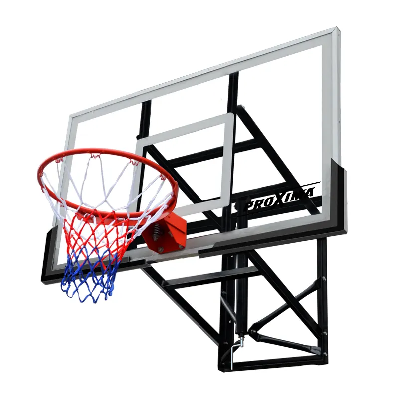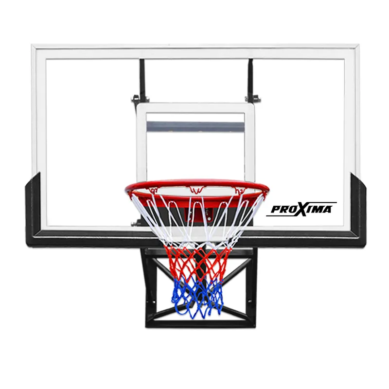 Игра — там, где вы. Мобильный баскетбольный щит Proxima из акрила предназначен для установки в спортивном зале. Размеры щита — 136 на 80 см. Прозрачный ударопрочный акрил гарантирует долговечность и надежность. В комплекте кольцо диаметром 45 см с пружиной и прочная нейлоновая сетка. Высота щита регулируется специальной рукояткой.