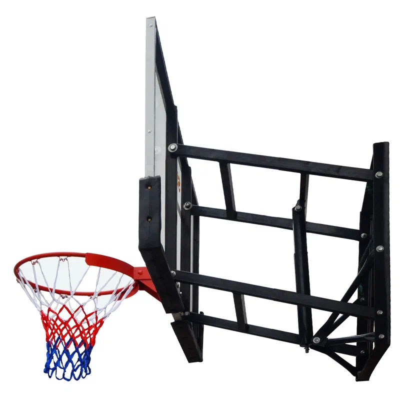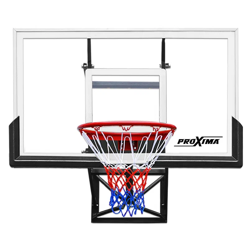 Игра — там, где вы. Мобильный баскетбольный щит Proxima из акрила предназначен для установки в спортивном зале. Размеры щита — 136х80 см. Прозрачный ударопрочный акрил гарантирует долговечность и надежность. В комплекте кольцо диаметром 45 см с пружиной и прочная нейлоновая сетка. Высота щита регулируется специальной рукояткой.